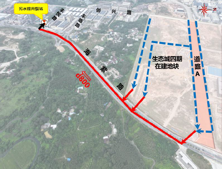 深圳龍崗-汕尾海豐共建園區位于汕尾市海豐縣海紫路西側,園區分期建設,其中生態城四期的污水原設計由海紫路東側建設的污水管道、園區西側規劃道路下污水管道進入海豐縣第二污水處理廠,但是由于該兩段均未建設,導致目前生態城四期范圍內產生的污水無法排出。為有效的貫徹實現“十四五”園區污水全收集全處理的目標,發揮海豐縣城第二污水處理廠處理效益,實現污水應收盡收,經縣委、縣政府組織,海豐縣水務局、城東鎮政府等單位參與召開協調會議決定,同意啟動建設深圳龍崗-汕尾海豐共建園區公共配套設施提升項目(生態城四期污水管道建設項目)。